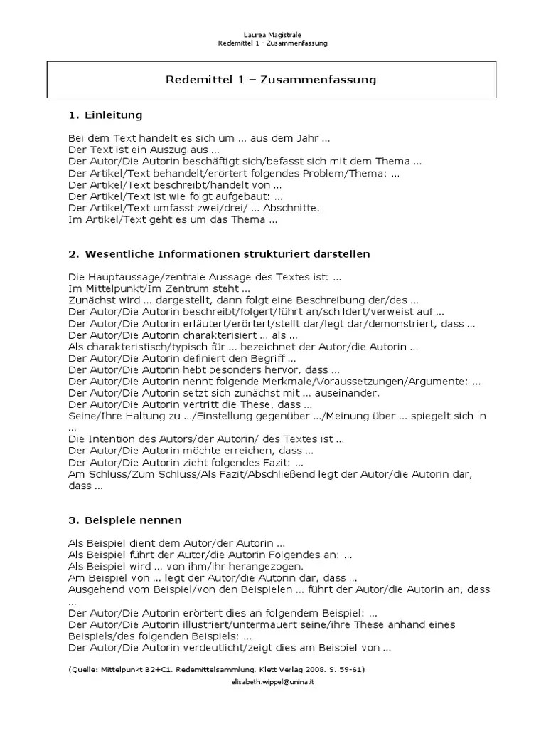 Zusammenfassung Redemittel - Redemittel C1 Giannis. Redemittel zusammenfassung redemittel zur zusammenfassung einleitung bei de te t ha delt es si h u … aus de jahr …. Vorbereitung für mündliche prüfung (telc b2). Redemittel zusammenfassung redemittel zur zusammenfassung einleitung bei de te t ha delt zusammenfassung. Redemittel zusammenfassung redemittel zur zusammenfassung einleitung bei de te t ha delt klett verlag 2008. Hier kommen die redemittel für eine präsentation:.